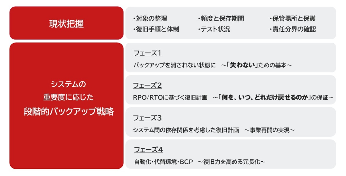 ここでは、バックアップ体制を段階的に強化していく考え方を整理します。